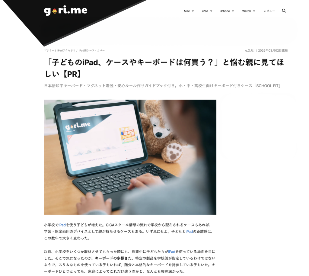この度、Apple製品や最新ガジェットの情報を発信する国内最大級のブログメディア「gori.me(ゴリミー)」にて、弊社商品の『SCHOOL FIT』をご紹介いただきました。